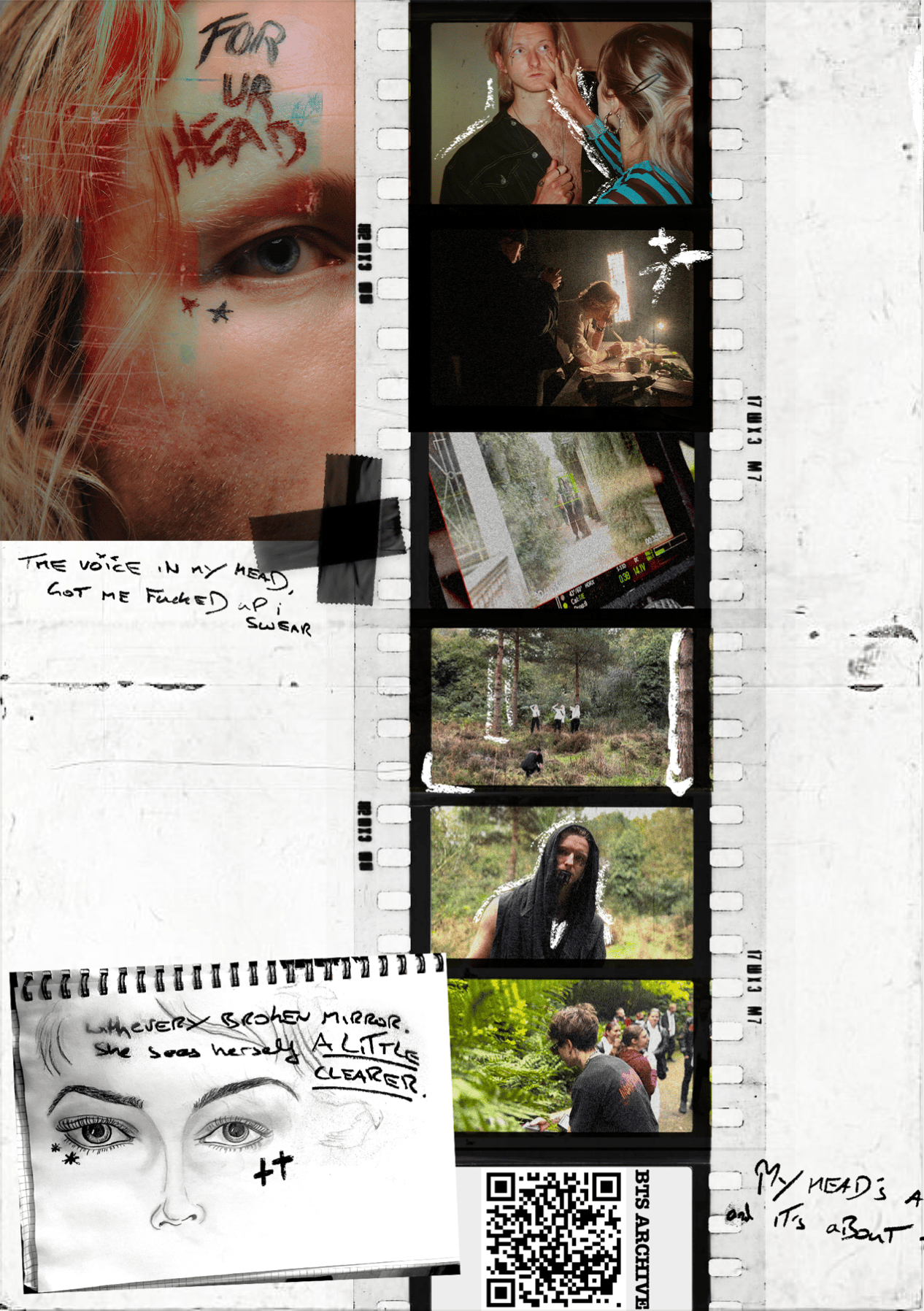 The zine includes a collection of letters, poems, sketches, archive materials and designs. QR codes allow you to access exclusive video content and downloads.